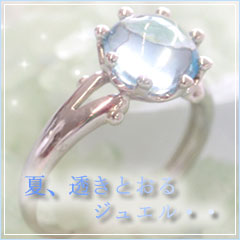 夏、透きとおるジュエル…38%OFF☆【スカイブルートパーズ×ホワイトゴールドリング・メルクーリ】カボションカットをほどこした大粒8ミリのスカイブルートパーズを、人気のミルククラウンの台座にセットして、キュートなリングをお作りしました♪