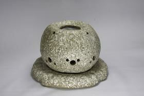 【品 名】庭石風電気式茶香炉(アロマポット)【サイズ】径140×高さ115mm【価 格】7,500円(税込7,875円)【素 材】陶 器 製 (常滑焼き)※電気式です。